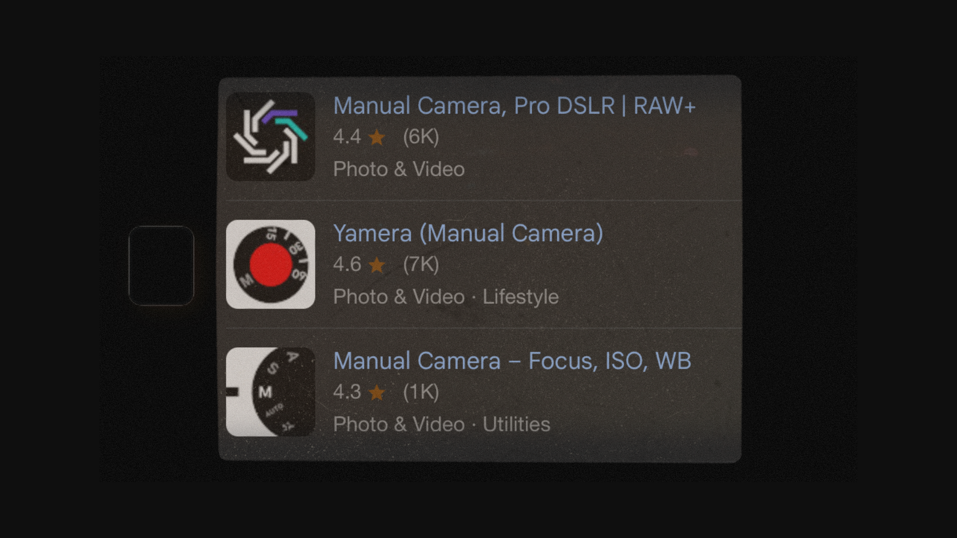 إذا ما كانت موجودة بجوالاتكم وحابين تتدربوا عليها فجربوا تطبيقات الجوال إلي تساعدكم تتحكموا في إعدادات التصوير بشكل يدوي وطبّقوا معايا جميع المفاهيم بإحترافية. رح أشارك التطيبقات بالصورة التالية ويمديكم تتحكموا من خلالها يدويًا بسرعة الغالق والأيزو وفتحة العدسة وتوازن اللون الأبيض وغيرها من المفاهيم إلي ذكرناها بالكورس.